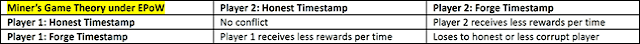 The EPoW reward algorithm is designed in such a way that any fake extra time sent by an attacker is more likely to be penalized for every second compared to issuing a new block with the shortest timestamp for the next block.